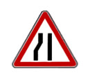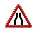 Road narrows on both sides